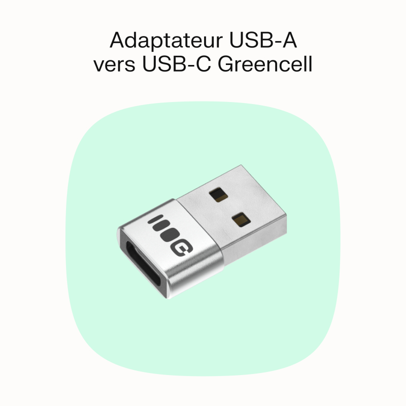 Adaptateur Plug&Play Greencell 2.4A USB-A vers USB-C 480 Mbps 12W aluminium