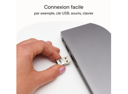 L'adaptateur fonctionne à la fois avec un smartphone et un ordinateur portable. Grâce à la fonction Plug&Play, l'adaptateur fonctionne immédiatement après avoir été connecté à l'ordinateur portable, sans nécessiter l'installation de pilotes supplémentaires.