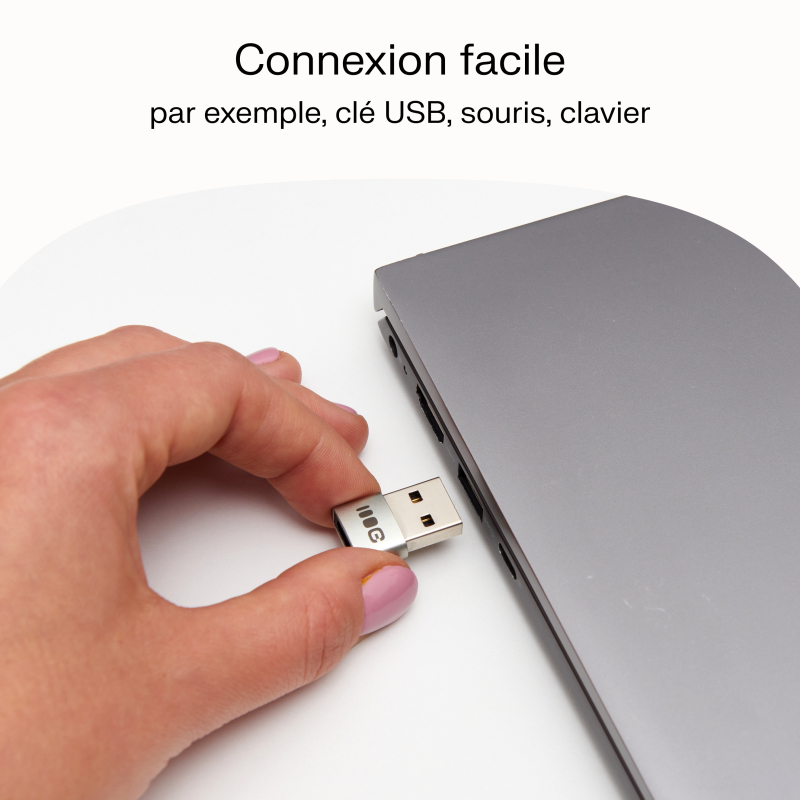 L'adaptateur permet de connecter facilement des appareils équipés d'un port USB-C aux ports USB-A standard. Grâce à lui, vous pouvez connecter des accessoires informatiques récents avec un câble USB-C à des ordinateurs portables avec USB-A. C'est une solution pratique qui permet de relier d'anciens appareils à une électronique moderne.