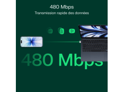 • Transmission rapide des données – fournit une vitesse de transfert de données allant jusqu'à 480 Mbps, permettant un transfert rapide et efficace des fichiers entre appareils.