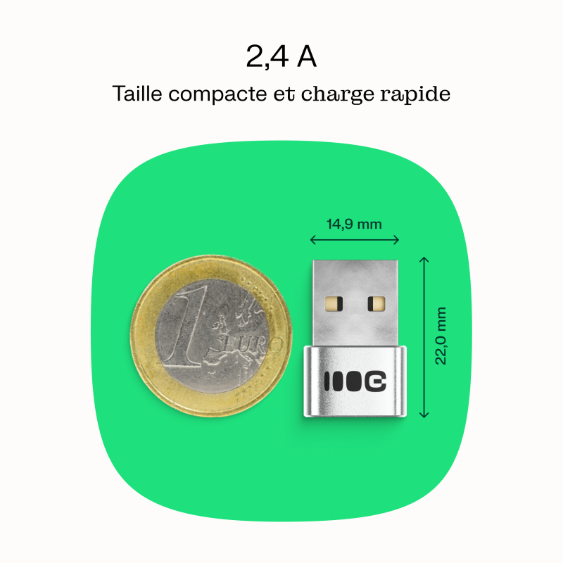 L'adaptateur est petit et léger, il se glisse donc dans une poche ou même dans le plus petit sac à main. Il prend également en charge la charge rapide et stable de 2.4A.