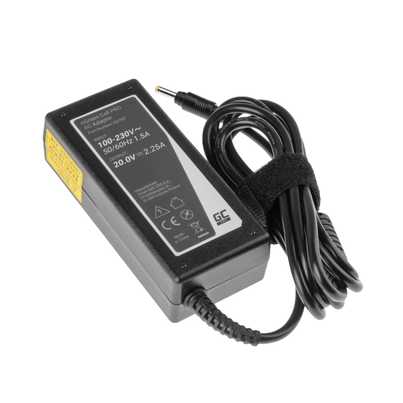 Le chargeur parfaitement compatible est construit à partir de matériaux de meilleure qualité, il contient des composants certifiés de la marque Green Cell. Il garantit la sécurité de charge et de fonctionnement de votre ordinateur portable.