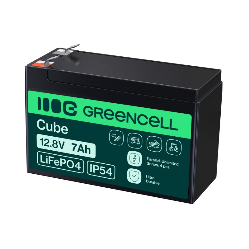 Green Cell CUBE LiFePO4 Batterie 7Ah 12.8V 89.6Wh LFP Batterie au lithium 12V pour UPS, Jouets, Surveillance, Alarme, CCTV